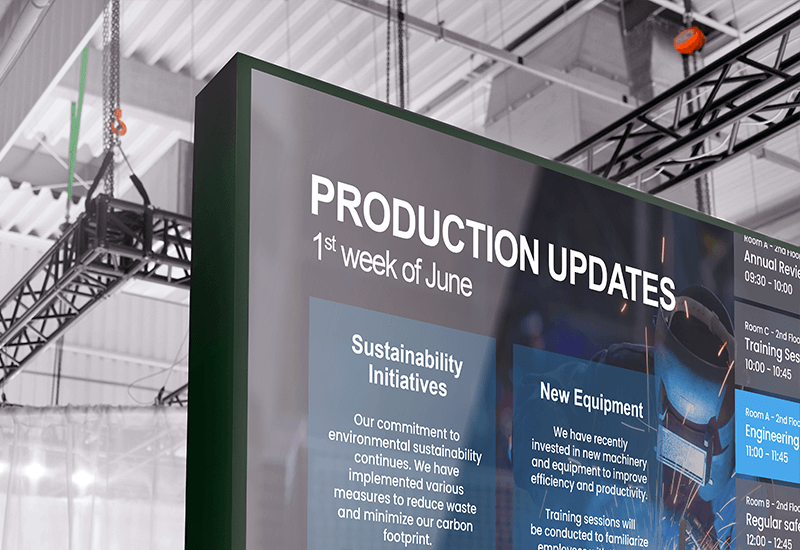La comunità rimane informata con annunci aggiornati tramite segnaletica digitale.