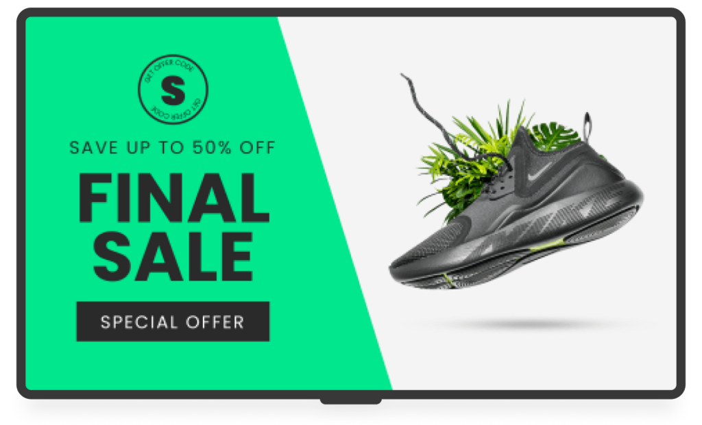 Mostra promozioni sugli schermi per coinvolgere i tuoi clienti e aumentare le vendite.