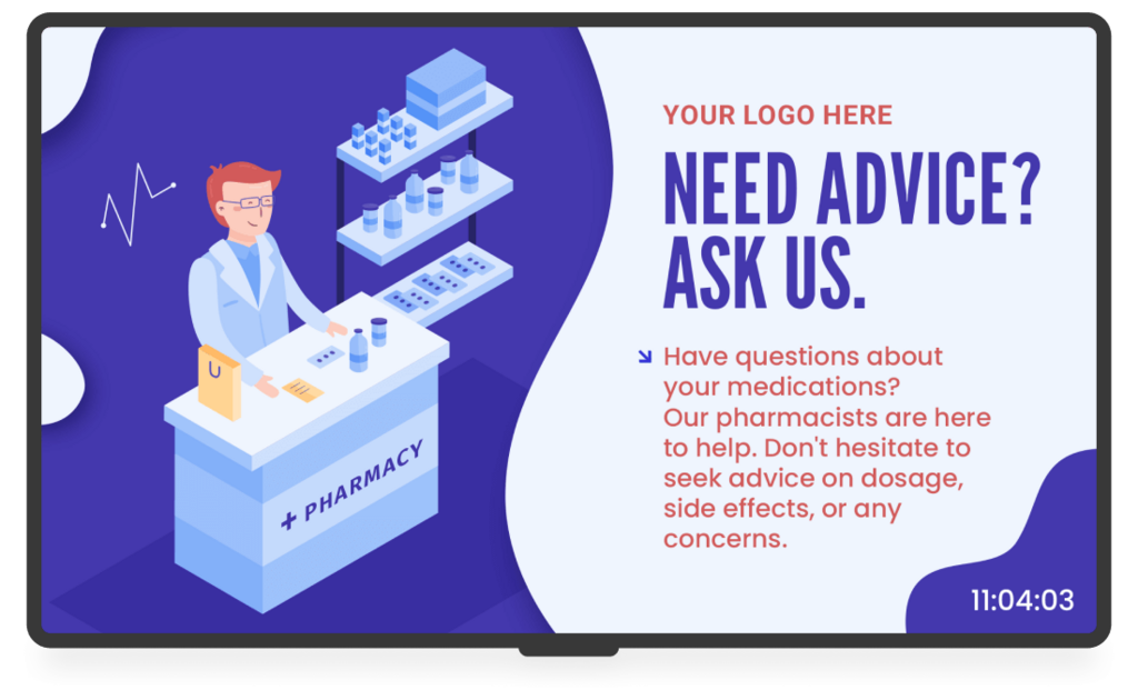 Digitalizza la segnaletica della tua farmacia. Crea fiducia, aumenta le vendite e migliora l'esperienza del cliente.